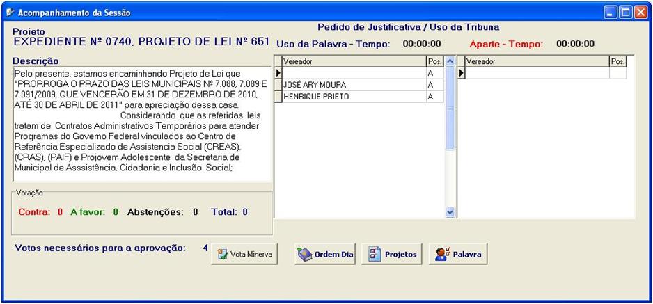 Presidente ou secretária com acompanhamento e controle total da sessão usa de palavra, ordem de votação, inicio e finalização dos processos.