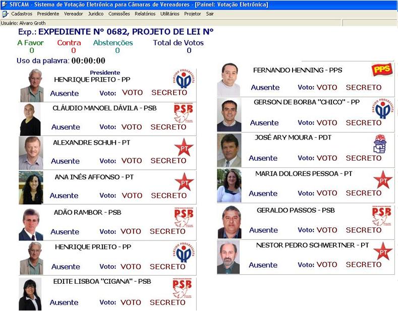 Painel de Votação Multimídia com recursos de banco de dados, substituindo vereadores por suplente em segundos. Painel definido também para votação secreta.